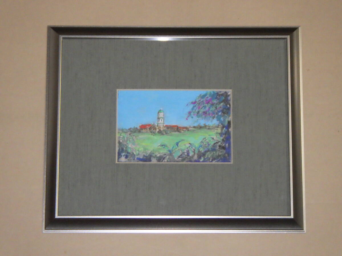 - 真作 希少 水彩画 肉筆 古田十郎 イロイロの教会 共シール 自筆サイン 落款 青山学院 1983年 額装