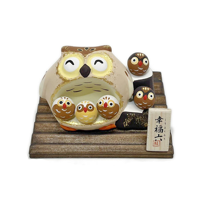 - 幸福六 ふくろう置物 素焼陶製 梟 フクロウ 縁起物 不苦労 福老 開運 招福 金運招来 ラッキーアイテム 可愛い置物 飾り物 雑貨