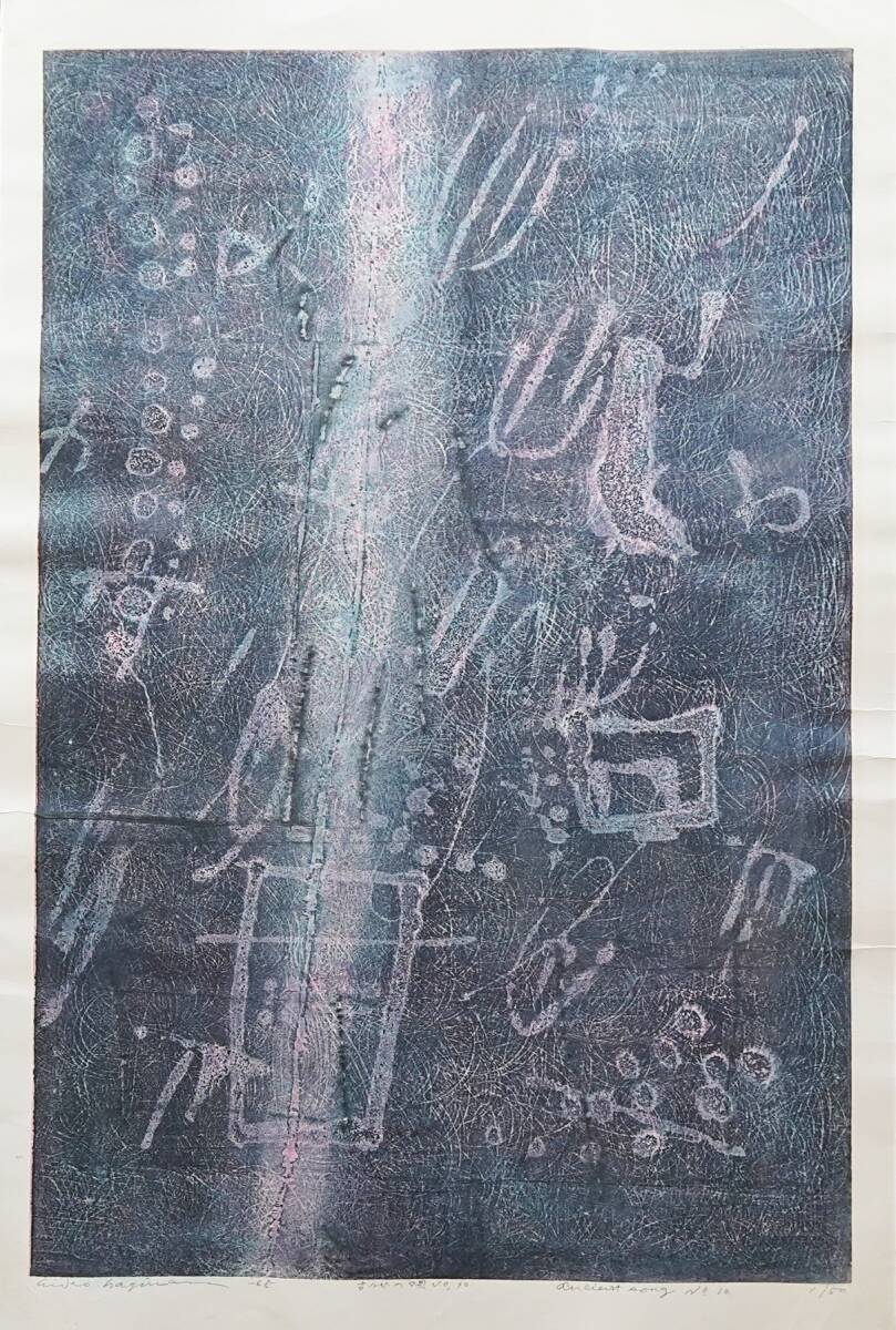 - 【真作・額装】萩原英雄 大判木版画(両面刷り)『古代の唄 No.10 (ancient song) 』 Ed.50の内、No.1 1965年 直筆サイン入 ●創作版画