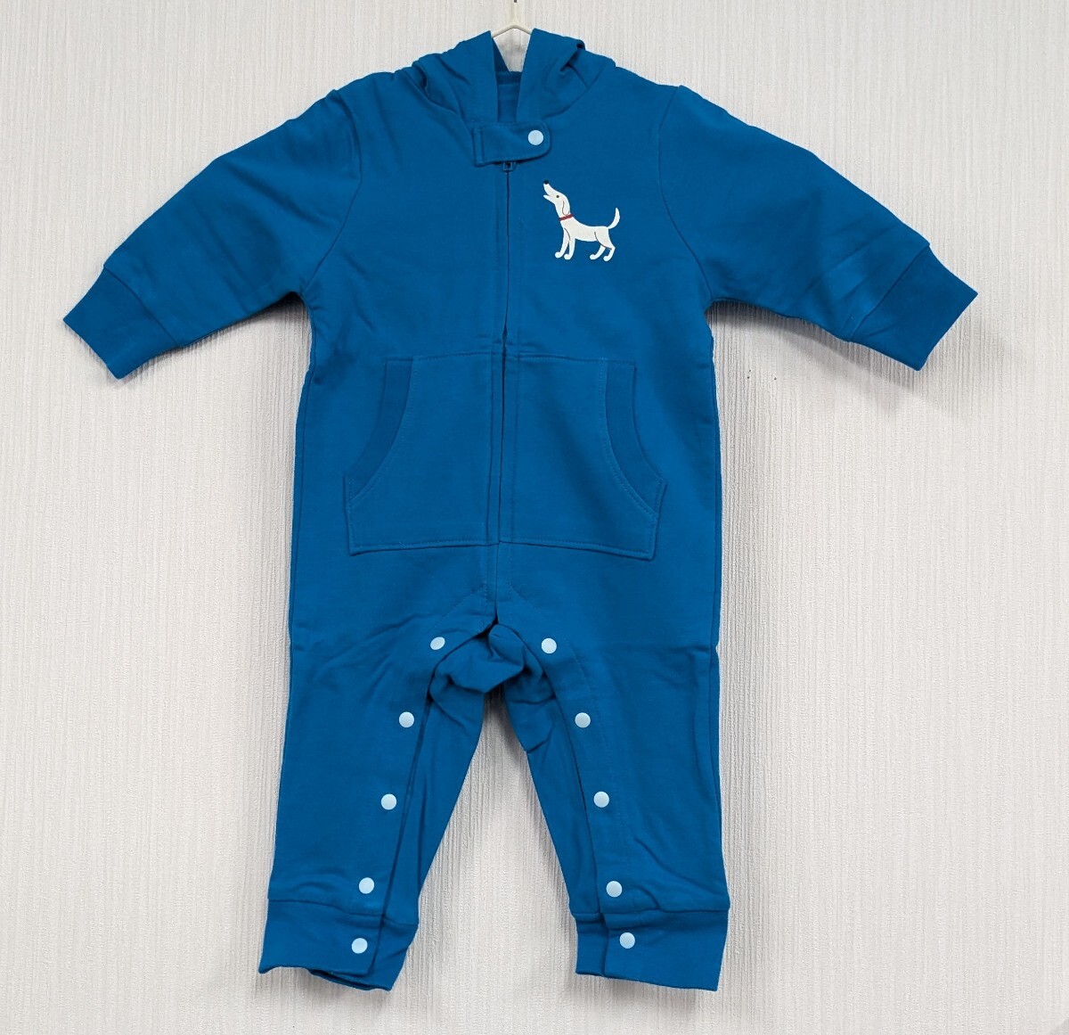 - カバーオール ベビー服 耳付きフード ブルー いぬ 80サイズ OC オリジナル