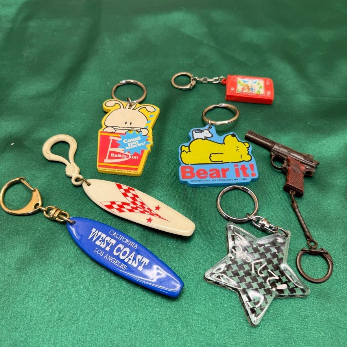 - レトロ! キーホルダー まとめて 拳銃 星型 ちぇっくして! バイキンくん サーフィンボード WEST COASS R7189
