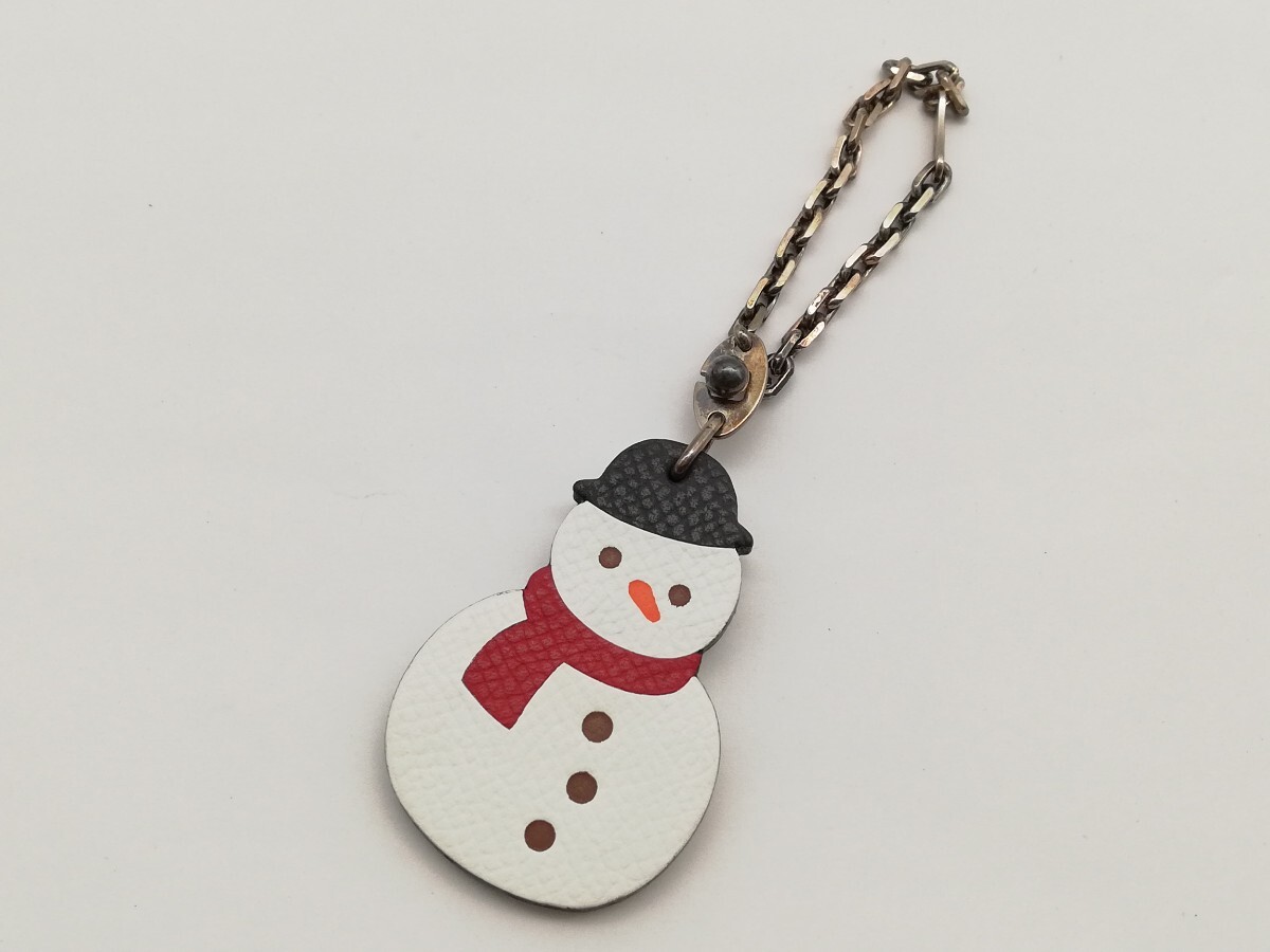 - レア HERMES チャーム 雪だるま キーホルダー スノーマン レザー バッグチャーム エルメス 送料無料