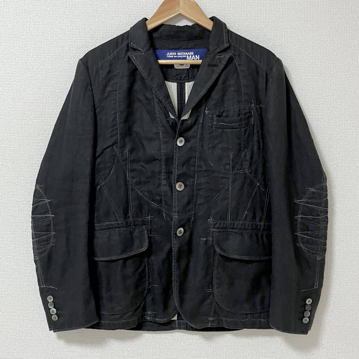 - AD2020 JUNYA WATANABE MAN コムデギャルソン リネン ステッチ デザイン テーラードジャケット 黒 ジュンヤワタナベマン archive 5010095