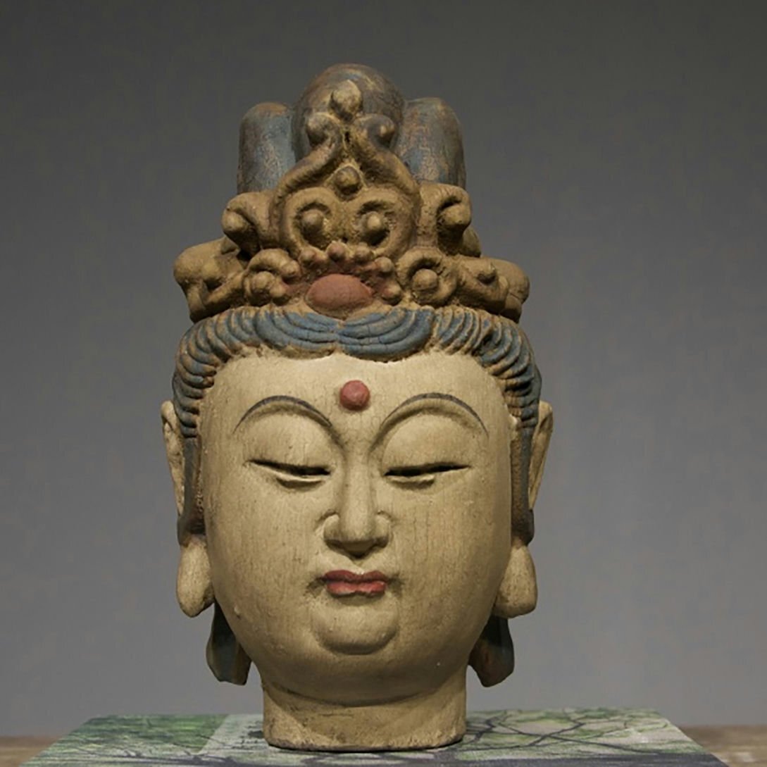 - ■観心・時代旧蔵■R876宋時代 楠木木彫菩薩頭 仏首 楠木細工彫刻★仏教古美術★仏像★細密細工★廃寺旧蔵★廃寺買出品