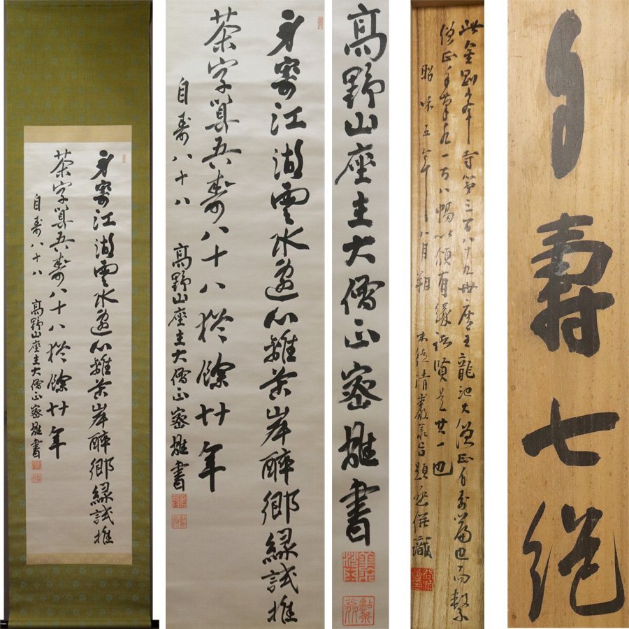 - 《源》【即決・送料無料】絖本 高野山管長 龍池密雄 自筆 七言絶句「自寿七絶」/識箱付