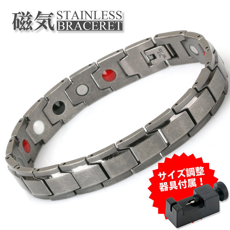 - 磁気ブレスレット メンズ ステンレス シルバー ブレスレット シルバー 金属アレルギー対応 磁力 磁石 316L 調整器具付属