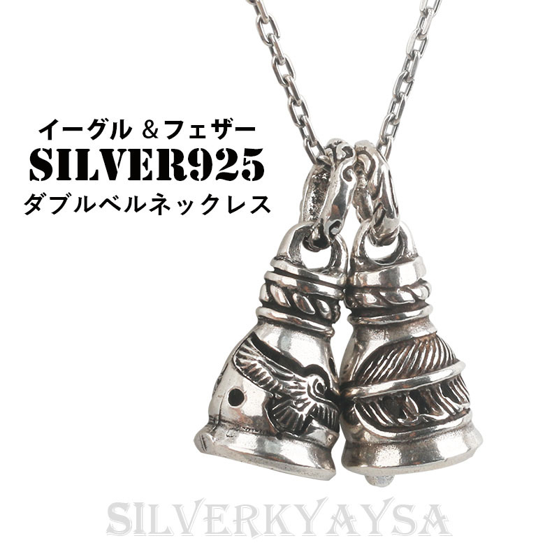 - シルバー925 ダブルベルネックレス クレーンベル イーグル フェザーネックレス あずきチェーン 45cm 専用BOX付属