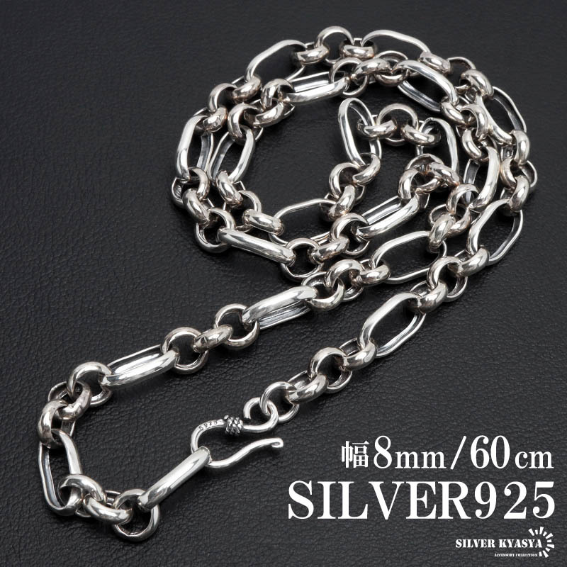 - シルバー925 ロールチェーン ネックレス 幅8mm 60cm フィガロチェーン 太め メンズ 男性 金属アレルギー対応