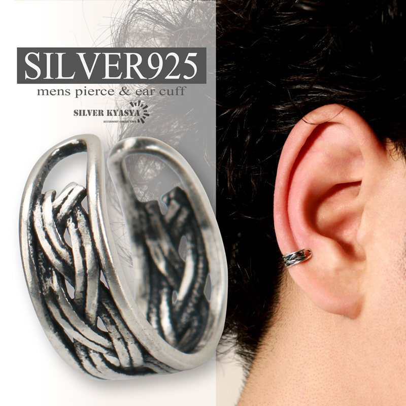 - 編み込みイヤーカフ シルバー925 メッシュ 小ぶり イヤーカフ 挟むだけ 耳の穴不要 アレルギー対応 片耳用
