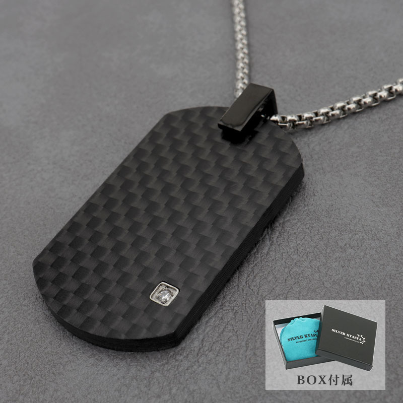 - シンプル 高級感 メンズ カーボン素材 軽い ドッグタグネックレス プレートネックレス ブラック チェーン付き 専用BOX付属