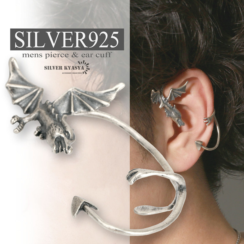 - ドラゴンイヤーカフ ラージサイズ 龍 シルバー925 竜 イヤーカフ 挟むだけ 耳の穴不要 アニマル アレルギー対応 片耳用