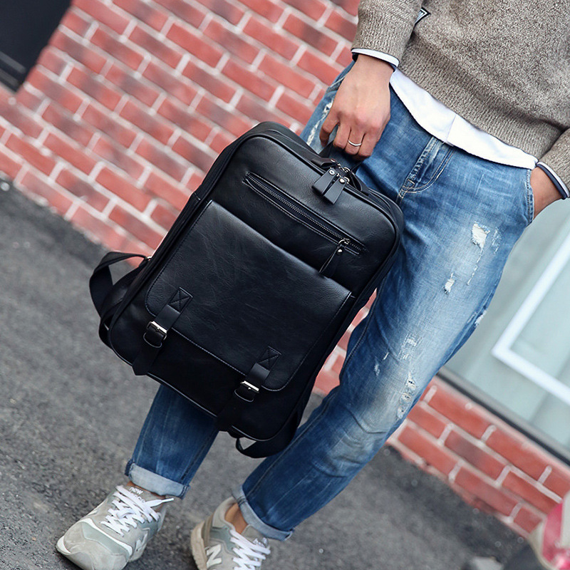 - メンズ&レディース スクエア リュック 通勤 通学 ブラック