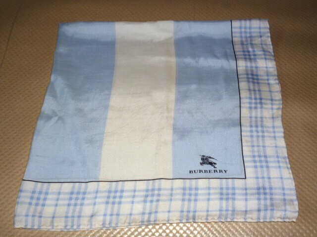 > バーバリー BURBERRY ブルー ホワイト ホースマーク 大判ハンカチ 57.5cm×56.5cm 未使用 絹糸を使用