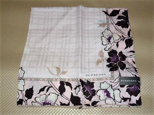 > バーバリー BURBERRY 薄いピンク シックなフラワー 花柄 大判ハンカチ 絹50% 綿50% 正規品 新品 B82