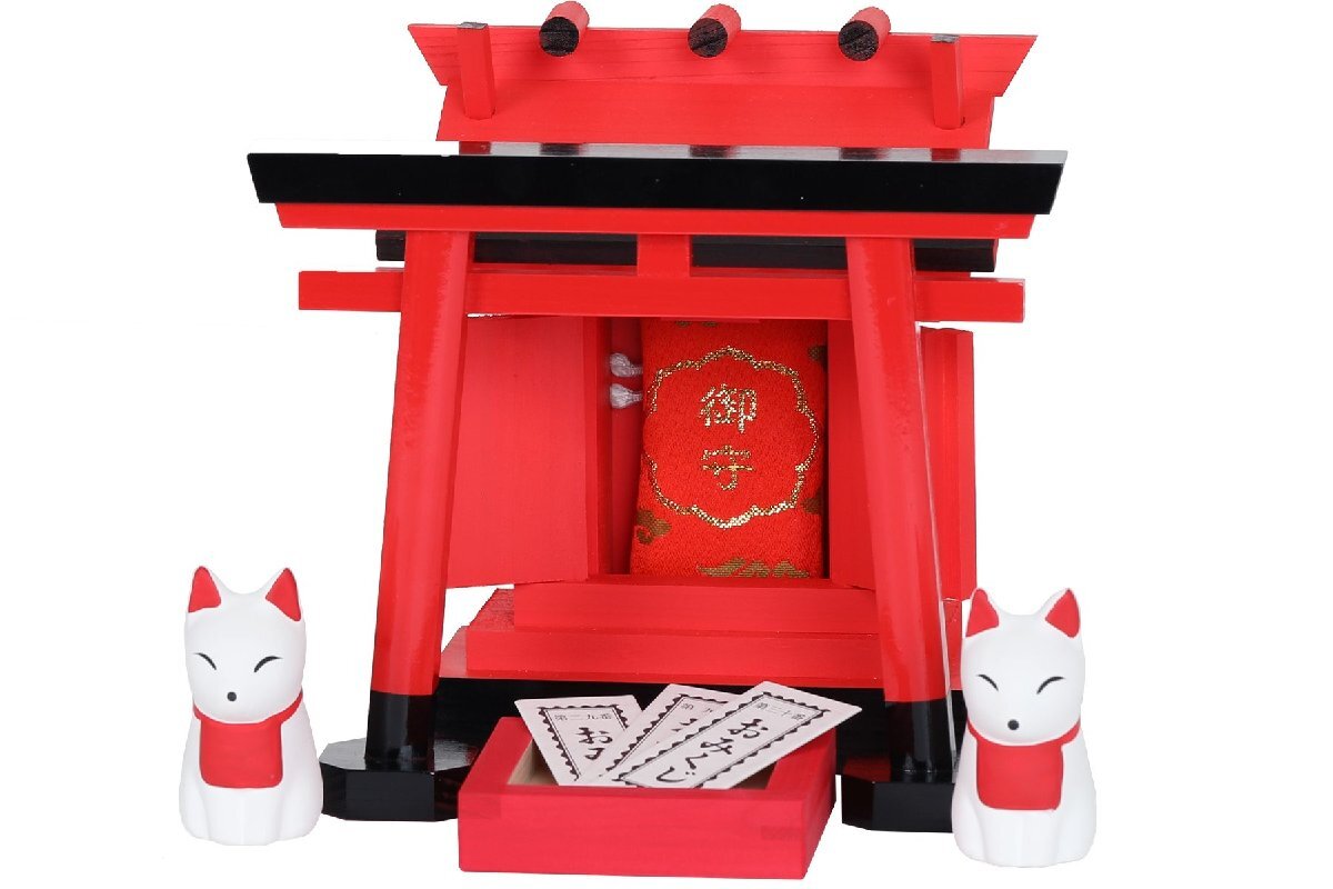 - 神棚セット モダン 小さなお稲荷さん おみくじ狐 鳥居 御守り 入れ 稲荷宮 小さなお宮さん 神棚