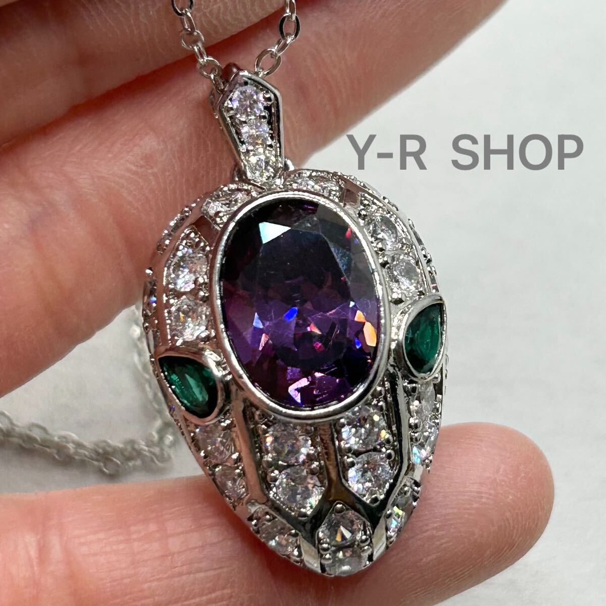 - アメジストとエメラルド のスネークデザインゴージャスペンダント★レディースネックレスシルバーアクセサリーカラーストーン新品宝石Y-R