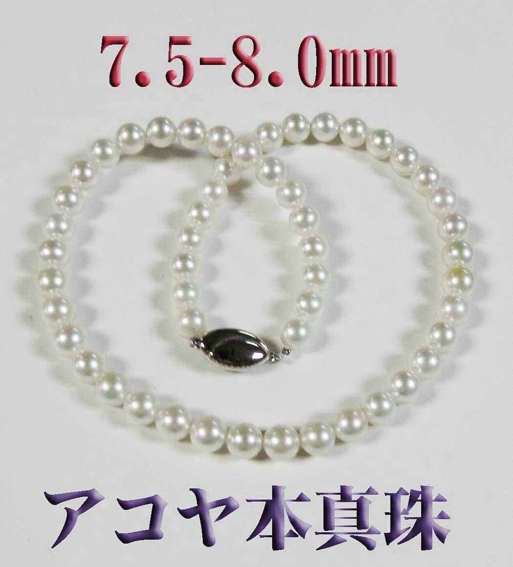 - 特別セール!!★新品 アコヤ本真珠ネックレス 7.5mm-8.0mm グリーン系 巻き-良