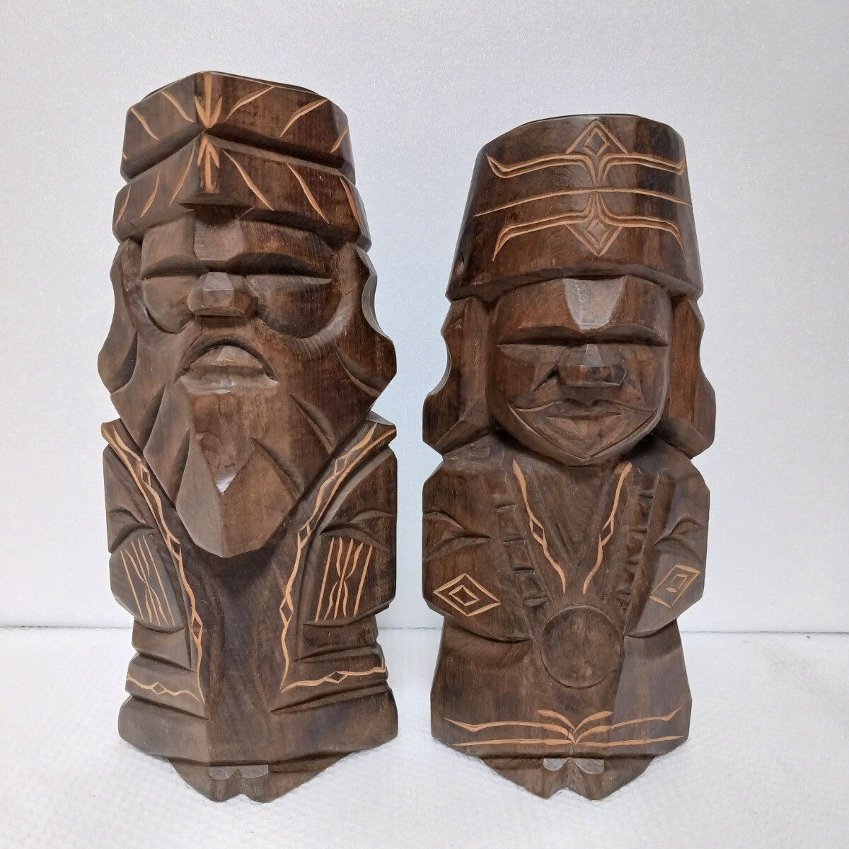 - アイヌ人形 木彫り ニポポ人形 アイヌ民族 ペア 工芸品 民芸品 置物 北海道