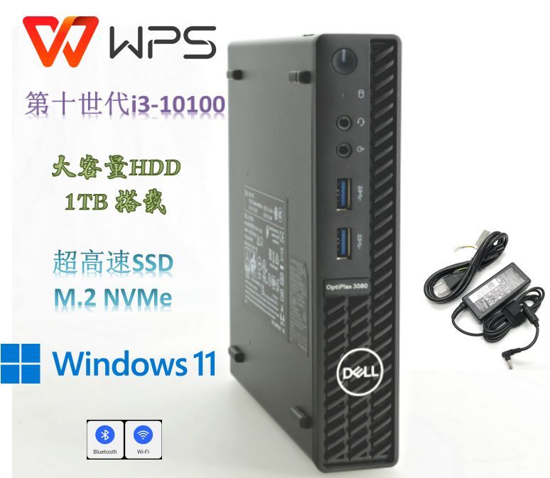 - D952/DELL 3080 micro/CPU i3-10100T/RAM 16GB(PC4-3200AA)/M.2 NVMe256GB+3.5HDD 1TB/WIN11Pro/Office WPS/内蔵型無線Wi-Fi+Bluetooth