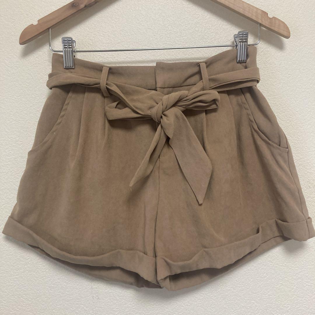 - 【イング】ショートパンツ【M】ベージュ リボン 無地柄 レディース カジュアル