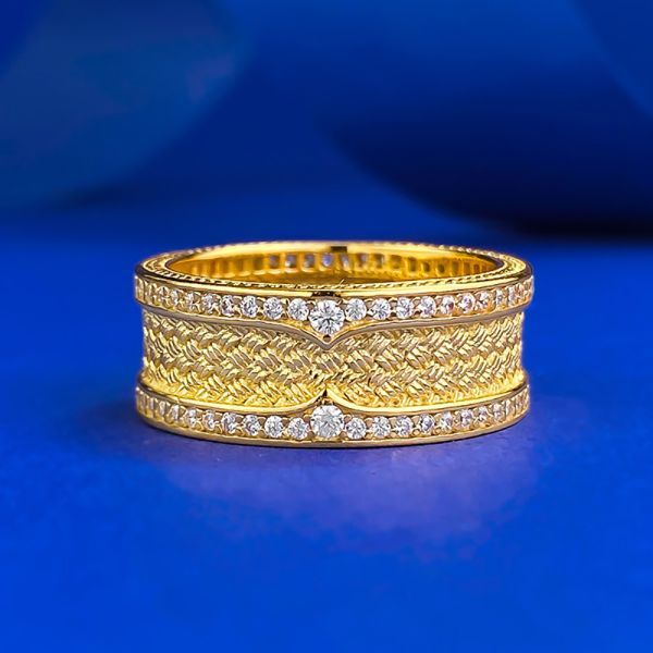 - 18K金メッキ925スターリングシルバーの古代ダイヤモンドリング、 高級ジュエリーバンド ◆最初の入札者様は開始価格で購入できます◆_Kn