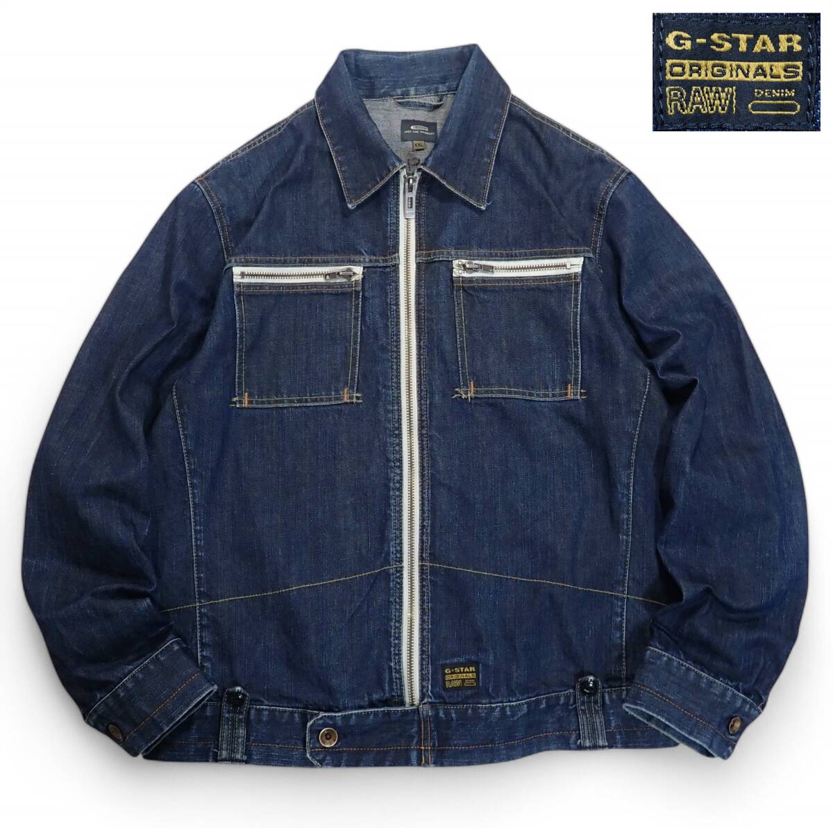 - 6368/G-STAR RAW 濃い目 デニム ジャケット XXL(実質~XL)●フルジップ Gジャン ジージャン ライダース トラッカー●洗濯プレス済●古着