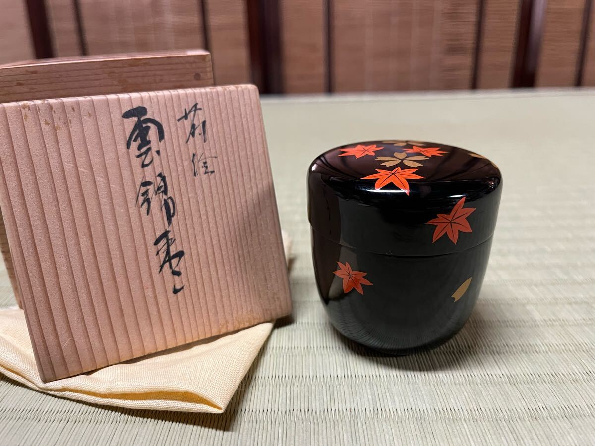 - 山口松太 雲錦棗 紅葉 備中漆 漆器 蒔絵 棗 共布 共箱 茶道具 茶器 岡山県 重要無形文化財