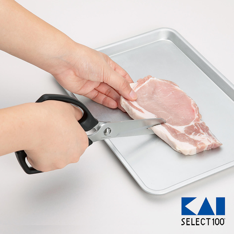 > キッチンバサミ はさみ 調理用 ハサミ 貝印 ステンレス 細刃 太刃 丈夫 鋭い 切れ味 カニ足 蟹 肉 ハム 食洗機対応 DH3005 SELECT100 KAI