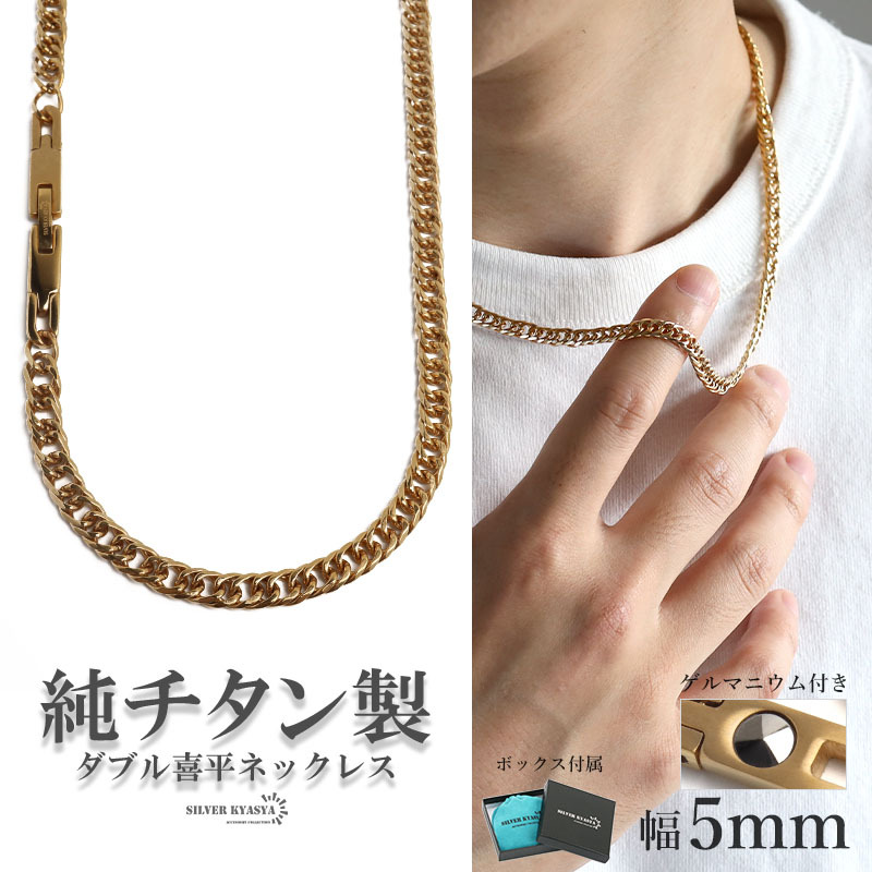 - (60cm) 純チタン製 軽い ダブル喜平チェーンネックレス チタンネックレス 幅5mm 細身 ゲルマニウム 金アレ対応 BOX