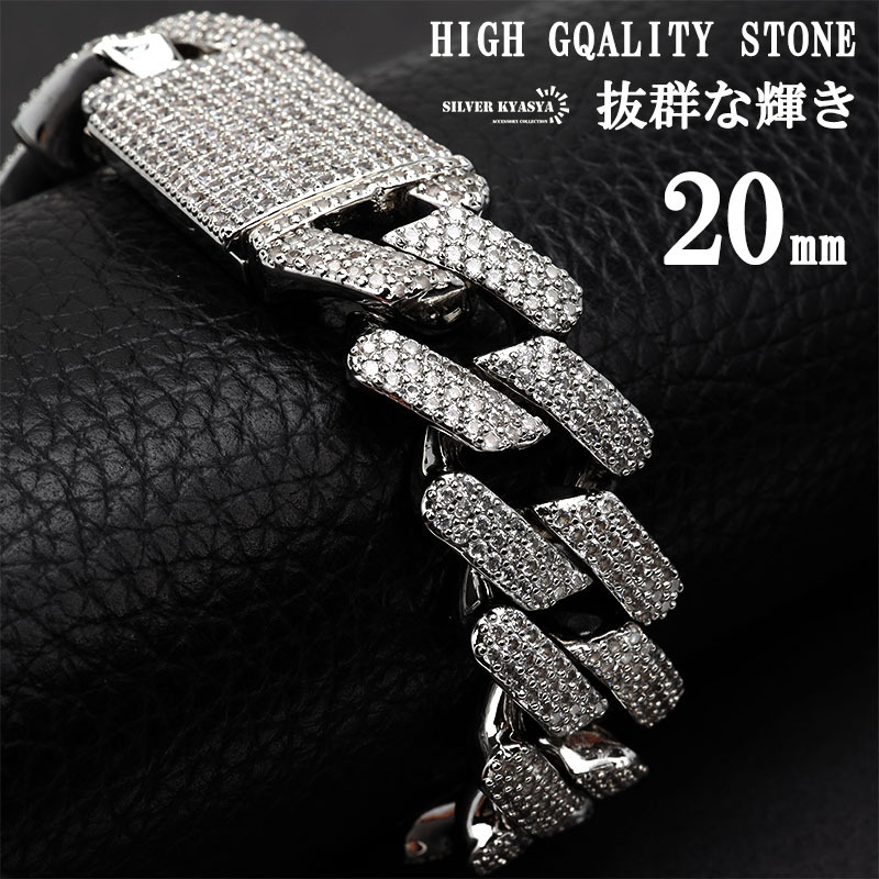 > (8inch(約20cm)) 極太ブレスレット シルバー 喜平ブレスレット メンズ 太め キラキラ パヴェ ダイヤ CZ BOX