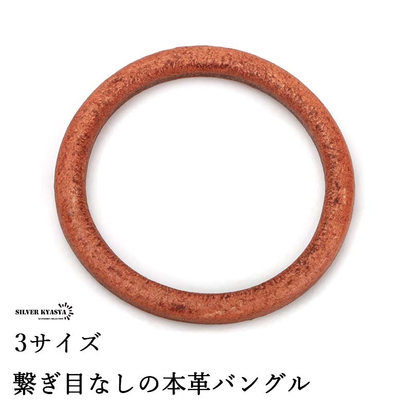 - (L-腕周り19cm) 縫い目なし 本革 バングル 腕輪 レザーブレスレット 牛革 ブラウン プレーンバングル