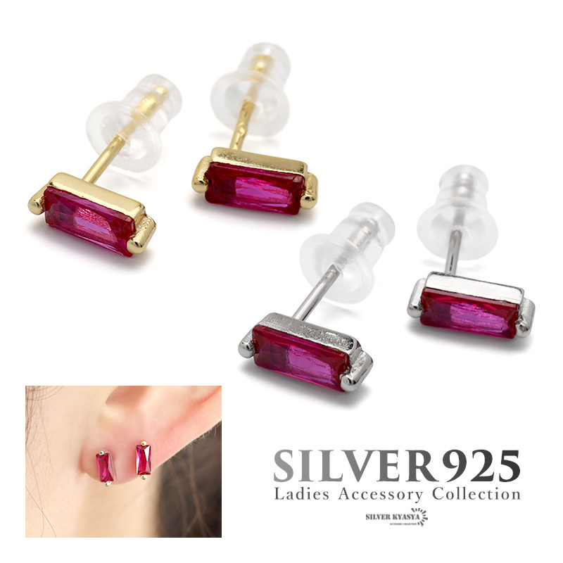- (シルバー) ピアス ストーン シルバー925 18KGP 18金 CZ スクエア 赤 両耳用 2点セット 金属アレルギー対応