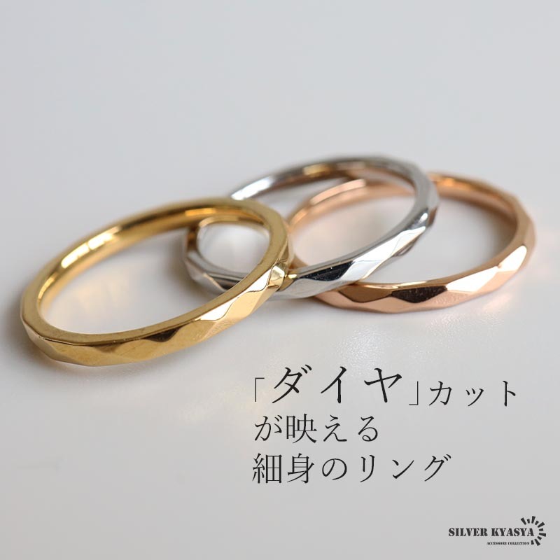 - (ローズゴールド、17号) ダイヤカットリング 細身リング カットリング キルディングリング ステンレス製 金属アレルギー対応