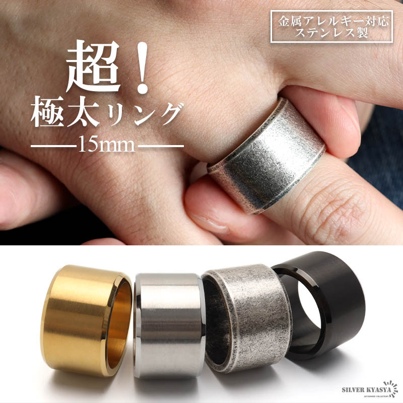 - (ブラック、26号) ステンレス 超極太リング ワイドリング ごつめリング 幅広 太幅 つや消し 金属アレルギー対応