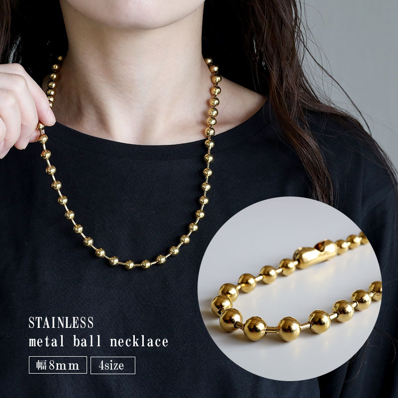 - (50cm) ステンレス ボールチェーンネックレス ゴールド 18KGP 幅8mm レディース ネックレス 金属アレルギー対応