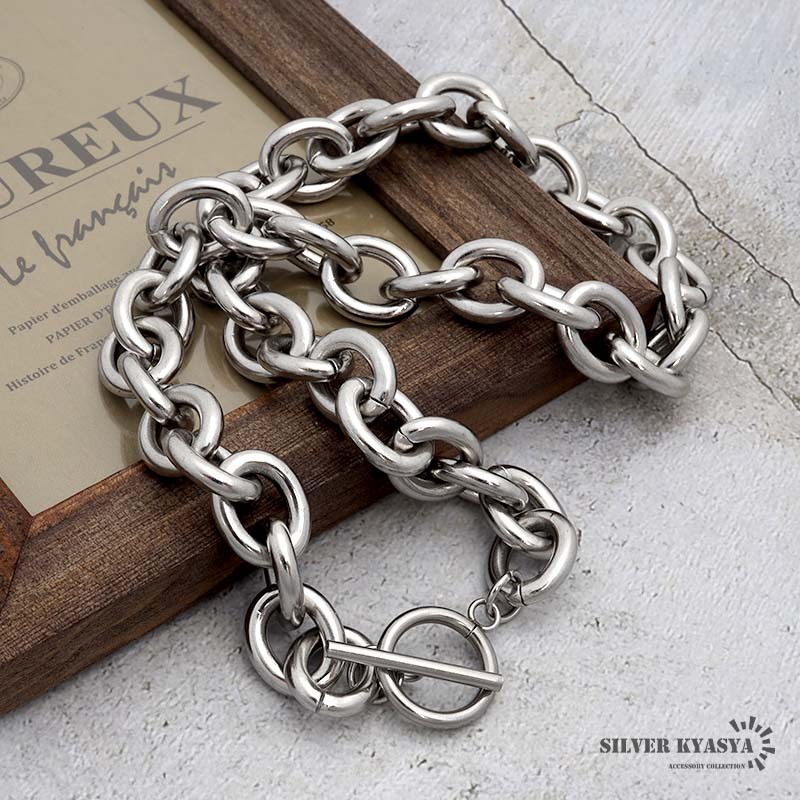 - (50cm) レディースネックレス 小豆チェーン ステンレス マンテル シルバー あずき 太め 太幅 ハンドメイド