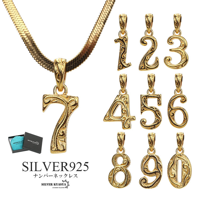 > (ナンバー:6、50cm) ナンバーネックレス ハワイアンネックレス ゴールド 数字ネックレス スネークチェーン 18K GP BOX付属