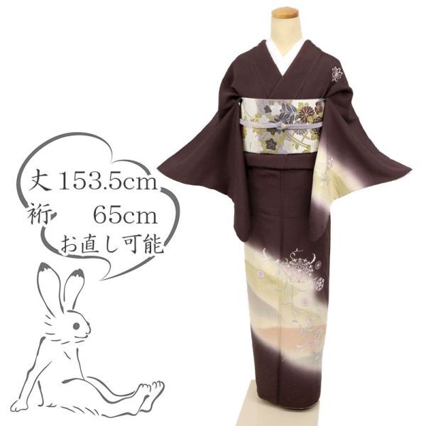 - 【付下げ】 豪華刺繍 宝相華の花束模様 黒鳶色 袷正絹着物 SP11-1