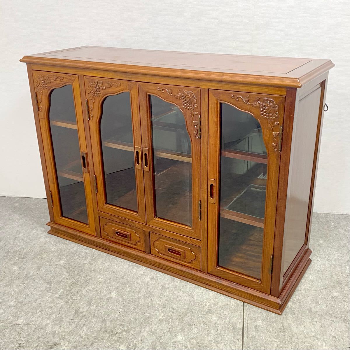 - □ 花梨 サイドボード リビングボード 飾り棚 キュリオケース ガラスキャビネット 彫刻装飾 照明付 ライト ガラス 高級 唐木 □25020505
