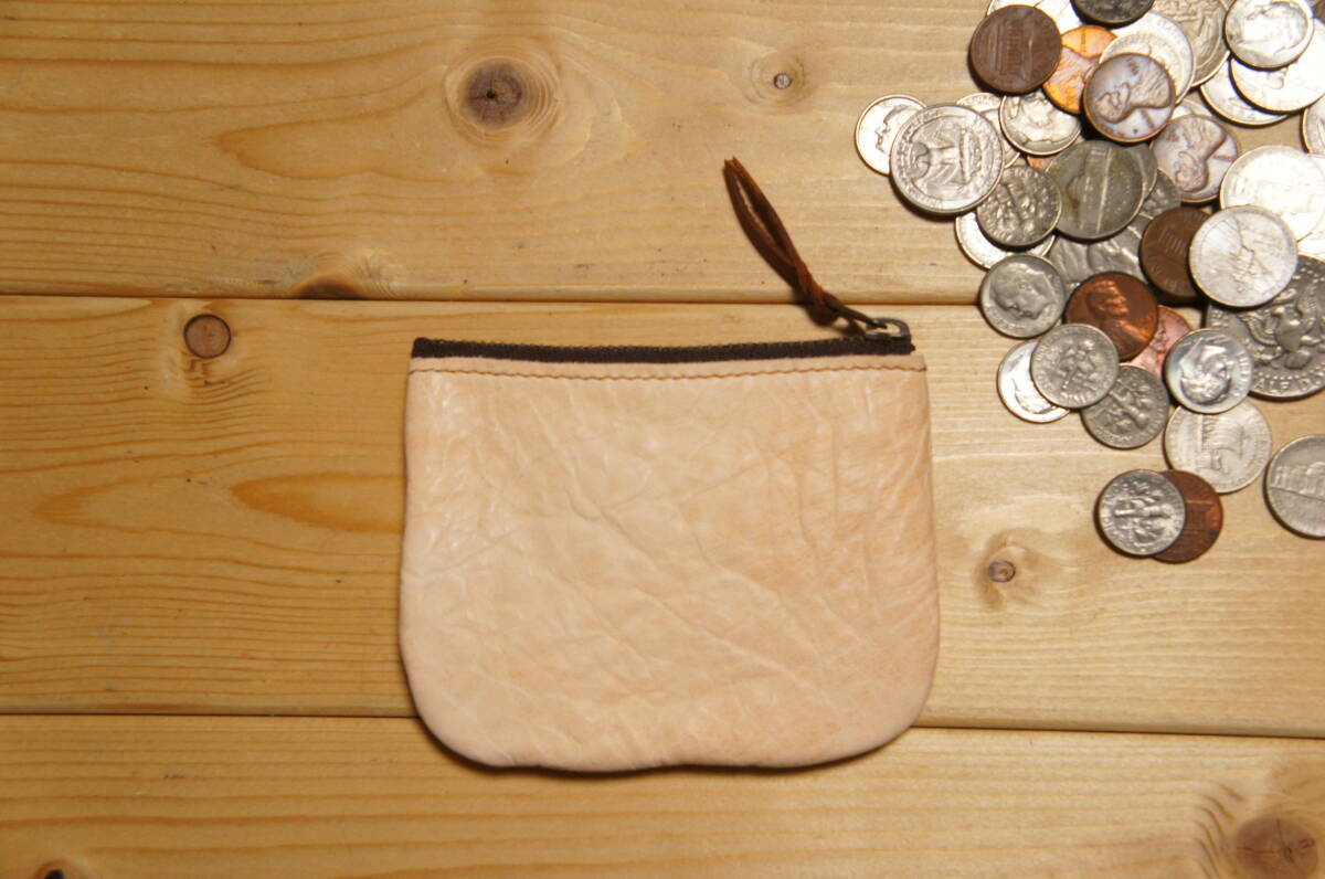 - 鹿革製 ファスナータイプ 小銭入れ うすだいだい色 薄橙色 N011 コインケース 小物入れ ミニポーチ 本革製