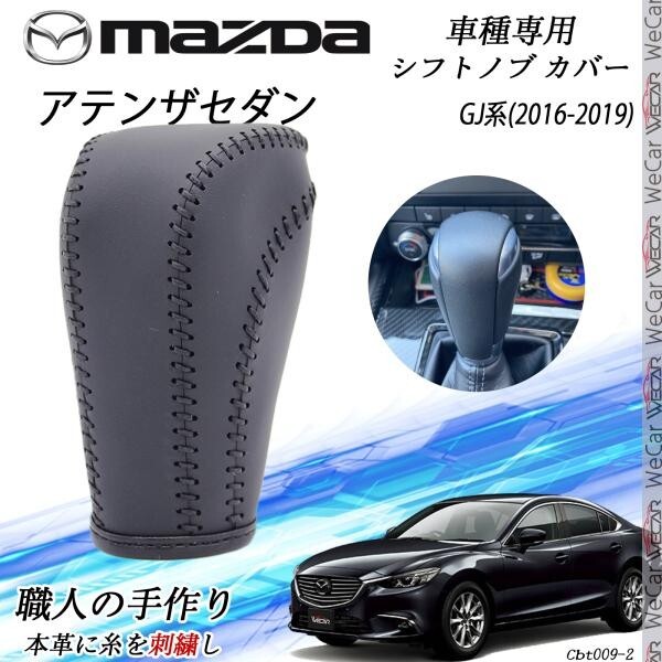 - アテンザセダン GJ系 シフトノブ マツダ専用 DIY 本革材質 内装カスタムパーツ アクセサリー 爪キズ防止 取付簡単 2016-2019 cbt9番黒線