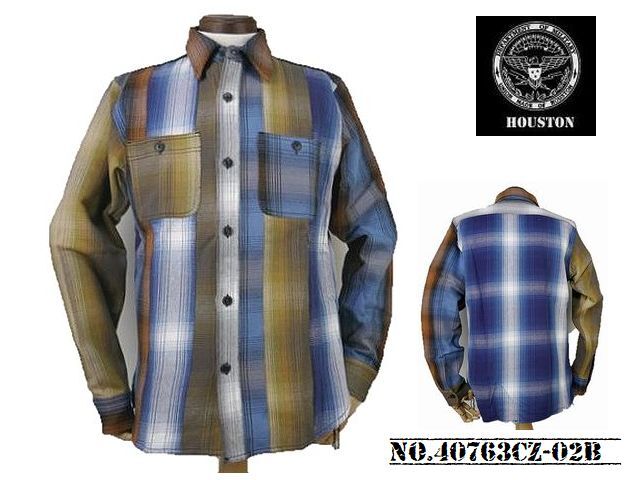 - 【送料無料 30%OFF】HOUSTON ヒューストン ヘビービエラ OMBRE CHECK クレイジーパターン WORKシャツ NO.40763CZ 02B_Lサイズ