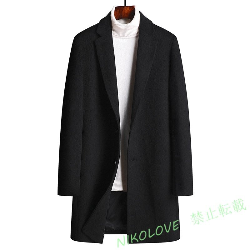 - ☆新品ウールコート 秋 ロングコート メンズ コート 紳士 ビジネスコート 厚手 チェスターコート 細身 アウター 黒色 M LK163
