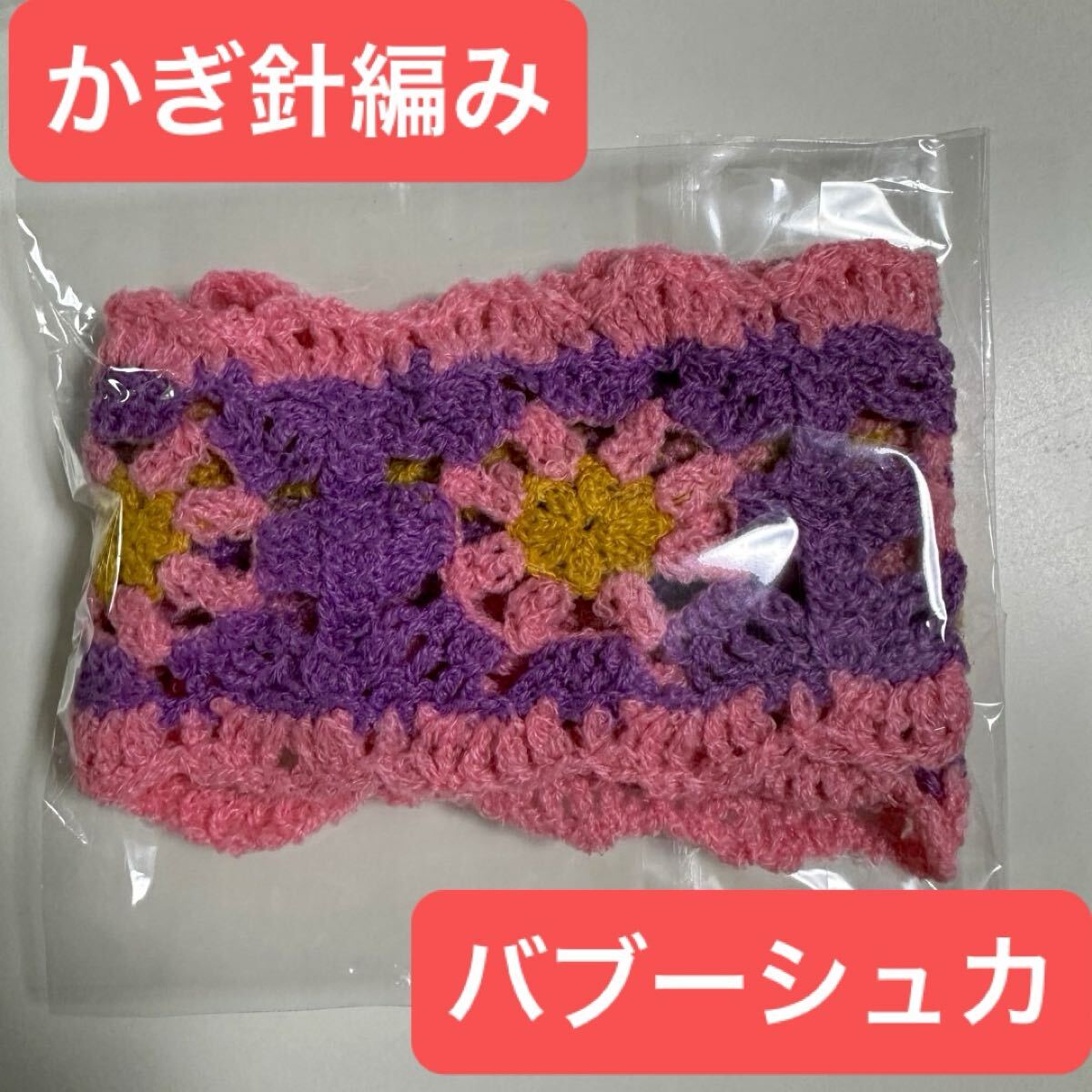 - かぎ針編み バブーシュカ ピンク 韓国 ヘアバンド クロシェ 花柄