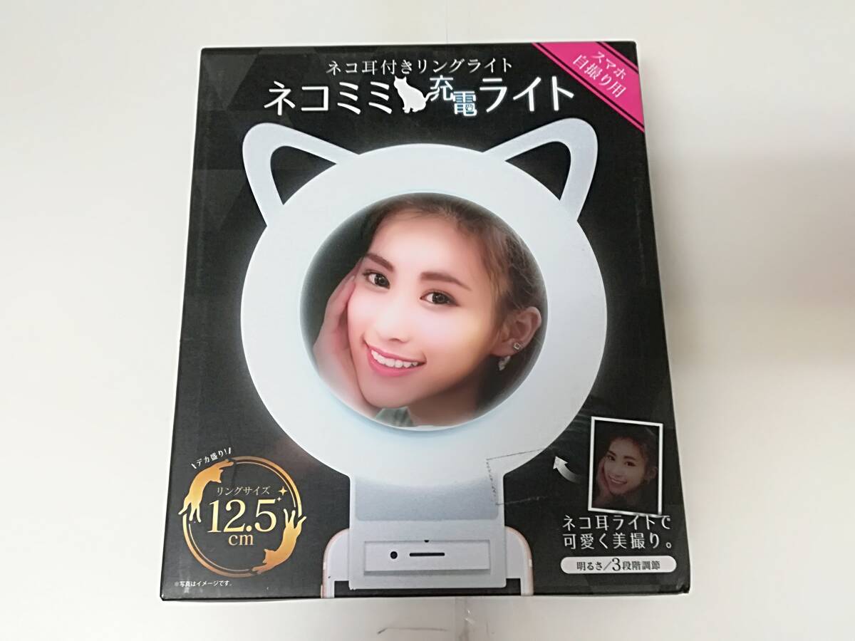 > ■未使用 スマホ自撮り用 ネコ耳付きリングライト ネコミミ充電ライト グレー リングサイズ12.5㎝ 未開封 景品 可愛く美撮り