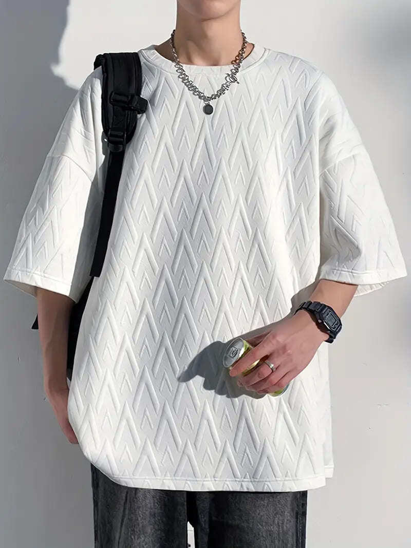 - 無地 立体柄 五分袖シャツ 095 白 ストリート ダンス HIPHOP B系 ヤクザ ヤンキー オラオラ系 悪羅悪羅 ホスト 服 メンズ ファッション