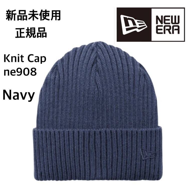 - 新品未使用 ニューエラ 刺繍 リブニットキャップ 紺 男女兼用 日本未発売 NEW ERA ネイビー ニット帽 海外限定 ビーニー NE908