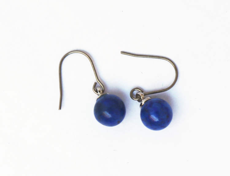 - 天然宝石 ラピスラズリ丸玉ピアス フックタイプ(チタン金具)6mm