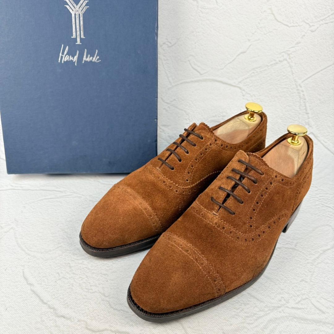 > 【美品】YANKO ヤンコ クウォーターブローグ 内羽根 スエード 茶 ブラウン UK5 23.5cm スペイン レザーソール ビジネス カジュアル ドレス