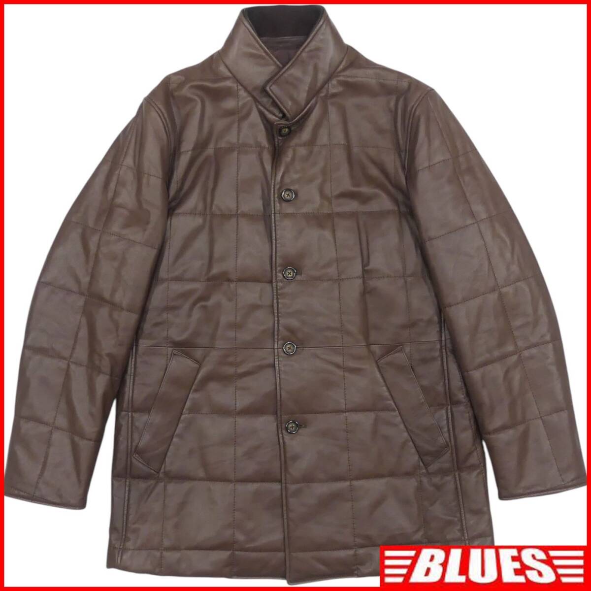 - 即決★N.B.★メンズ M オールレザーダウンジャケット 茶 キルティング 本革 アウター 本皮 ダウンコート 革ジャン 上着 ジャンパー